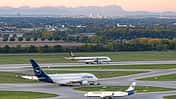 Lufthansa Jubiläums-A380 landet mit Riesenkranich