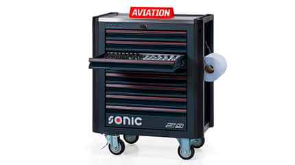 Sonic ist Hersteller von hochwertigen Handwerkzeugen und kommt ursprünglich aus dem Automotive-Bereich. Inzwischen sind die Niederländer auch in die Luftfahrt eingestiegen – und stellen uns mit dem 263-teiligen Werkzeugwagen Sonic NEXT S9 Aviation im Wert von knapp 4000 Euro den perfekten Preis für passionierte Selbstschrauber zur Verfügung.
