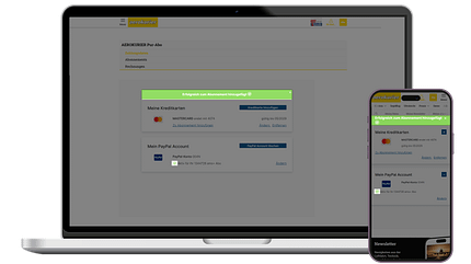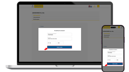 Mit den unten beigefügten Bildern zeigen wir Ihnen Schritt für Schritt, wie Sie Ihre abgelaufene Kreditkarte aktualisieren können. Grundvoraussetzung dafür ist, dass Sie mir Ihrem ams+ Account auf der Website eingelogged sind.