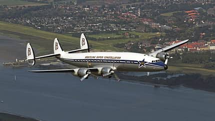 Die Lockheed Super Constellation ist ein extrem rarer Klassiker: Nur noch zwei Exemplare sind weltweit flugfähig, eine davon in Europa. Der viermotorige Airliner‑Oldie aus Basel kommt 2016 mehrere Male nach Deutschland.
