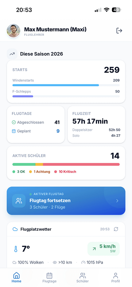 Die ersten zarten Erfahrungen aus seinem Umfeld zeichnen ein realistisches Bild. Die Bedienung der App ist für viele Nutzer intuitiv, für einige etwas komplexer. Kein Problem, dafür gibt es den "Einfachmodus", der Funktionen reduziert und den Einstieg erleichtert. Technisch wird SkyCoach an den "Vereinsflieger" angebunden, doppelte Datenpflege entfällt. Auch beim Thema Datenschutz bleibt der Ansatz pragmatisch. Alle Daten werden auf deutschen Servern verarbeitet, der Zugriff ist geregelt und auf den Verein beschränkt. Feedback soll Vertrauen schaffen.
